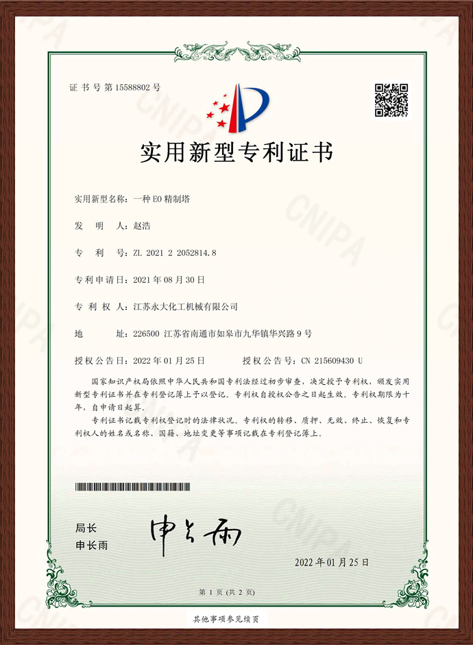 一种EO精制塔 - 专利认证 - 江苏PA直营化工机械股份有限公司
